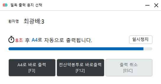 - 전산약봉투 사이즈만 출력 : 전산약봉투 사이즈를 고정하여 출력합니다.